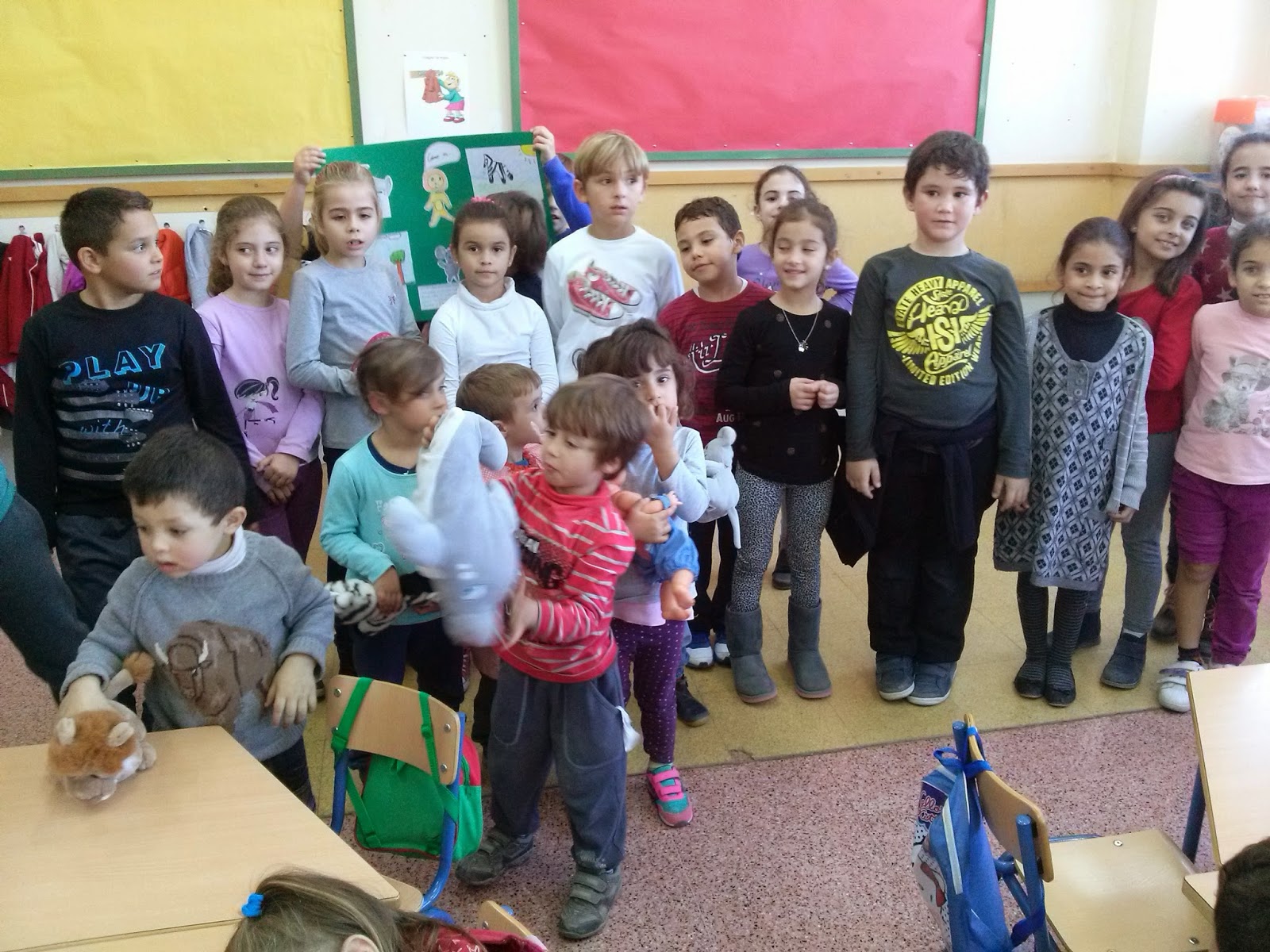 El miércoles quería trabajar la descripción con mis alumnos y olvidé coger de casa unos muñecos que había preparado como motivación. No quería dejarlo para otro día y pregunté a una compañera de Infantil si tenian en su clase peluches o muñecos para prestarnos. Comenzamos las clases y al ratito vinieron algunos pequeños a traernos a clase sus muñecos.